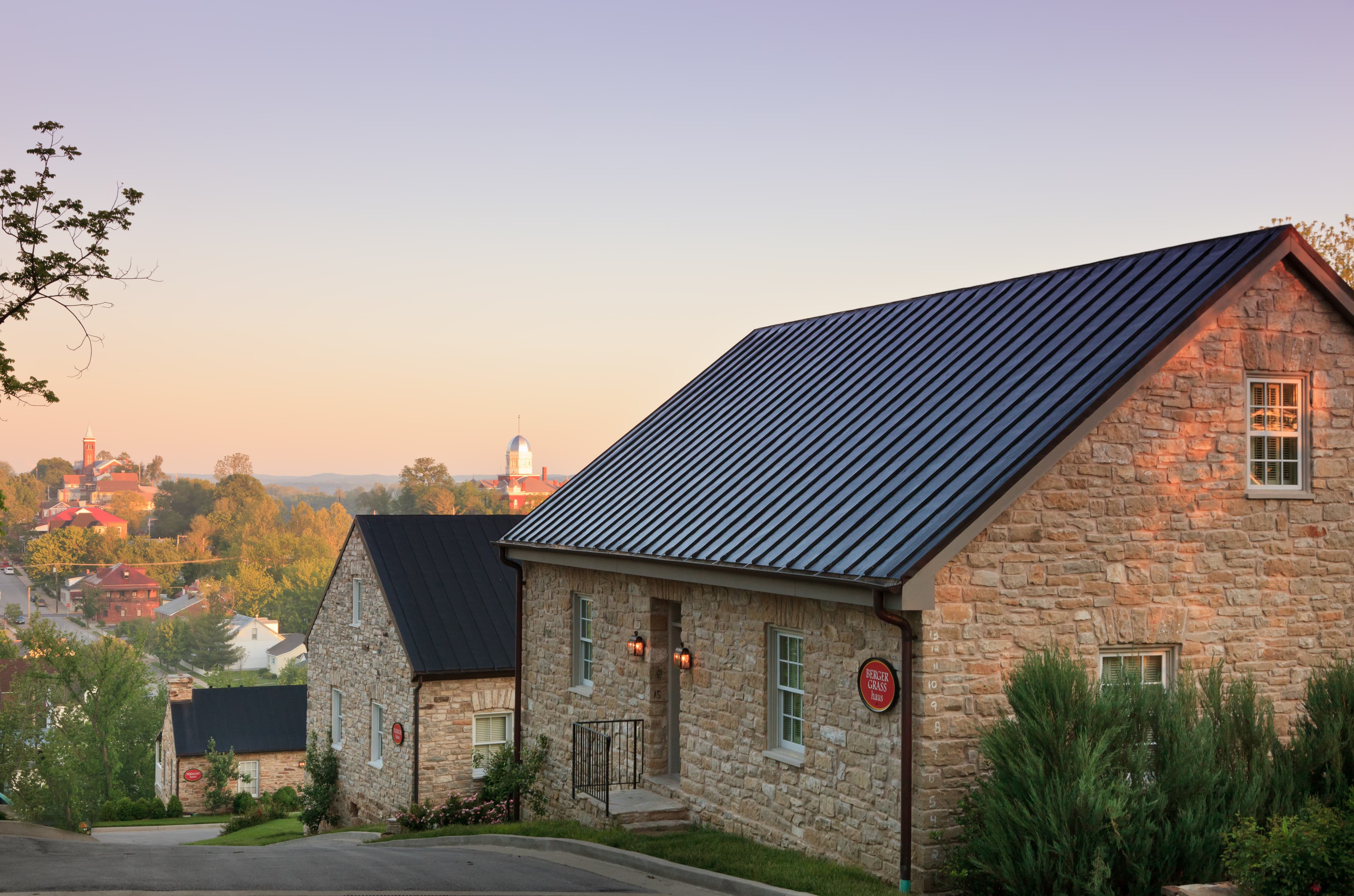 - Views of hillside, town of Hermann, and Missouri River