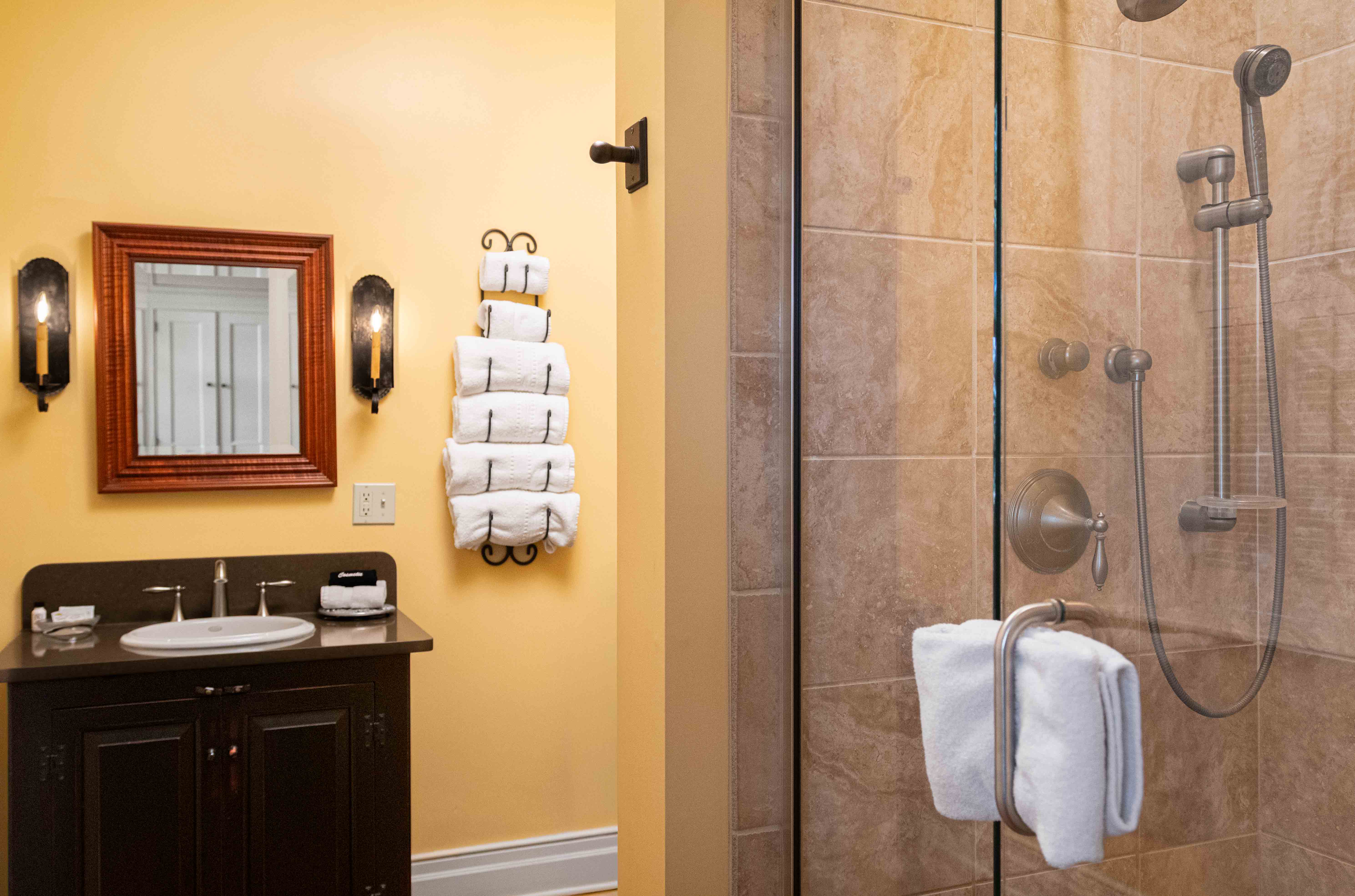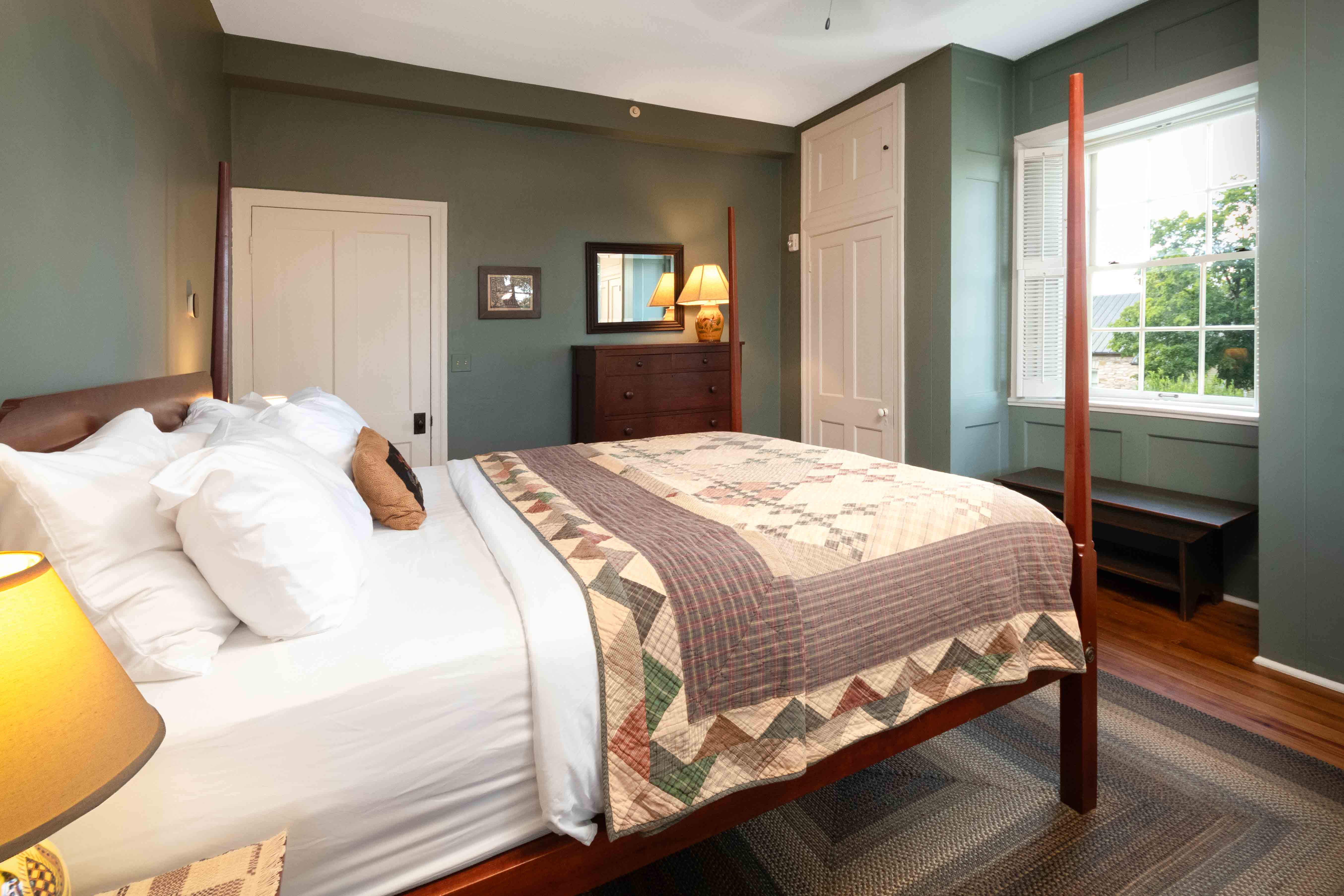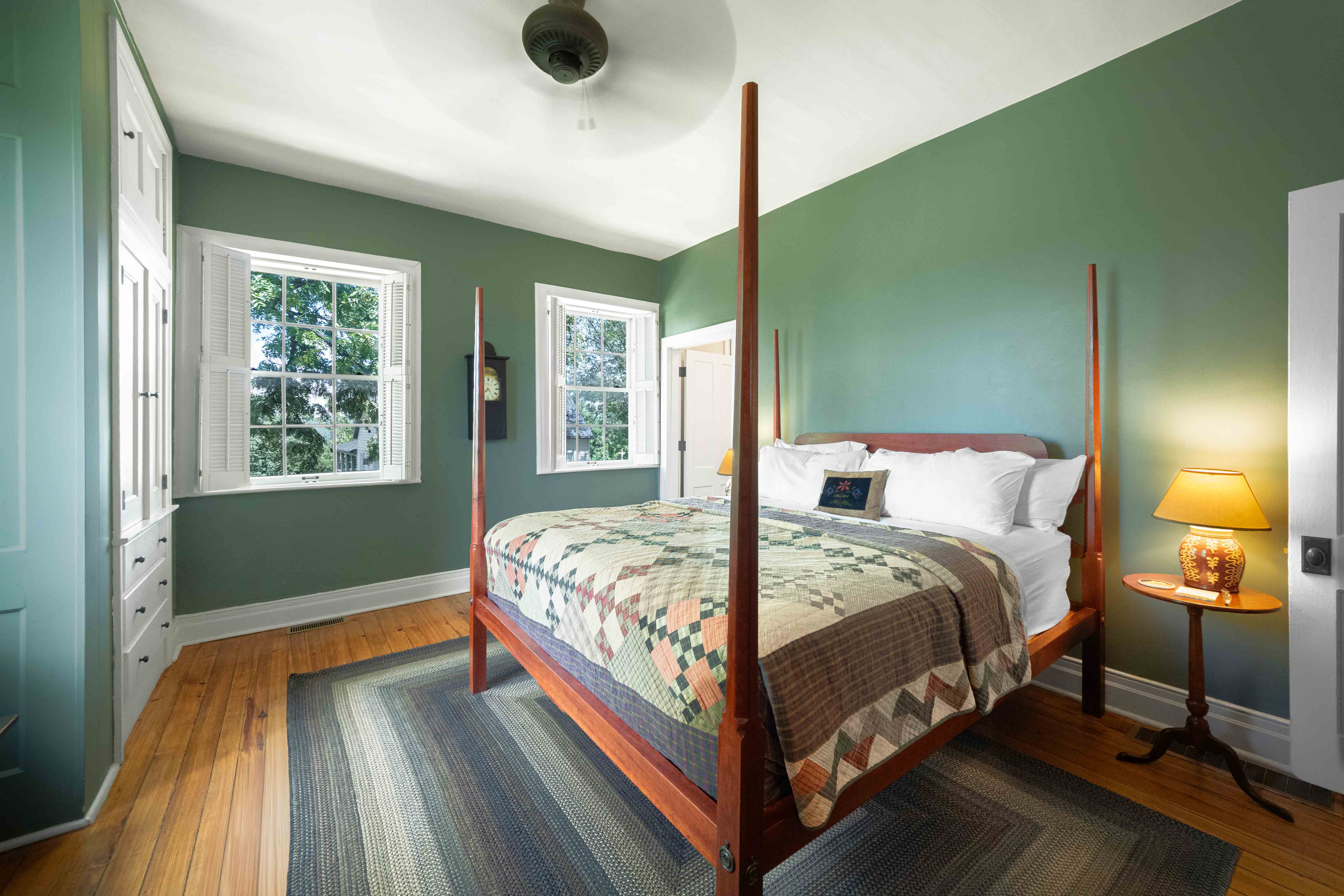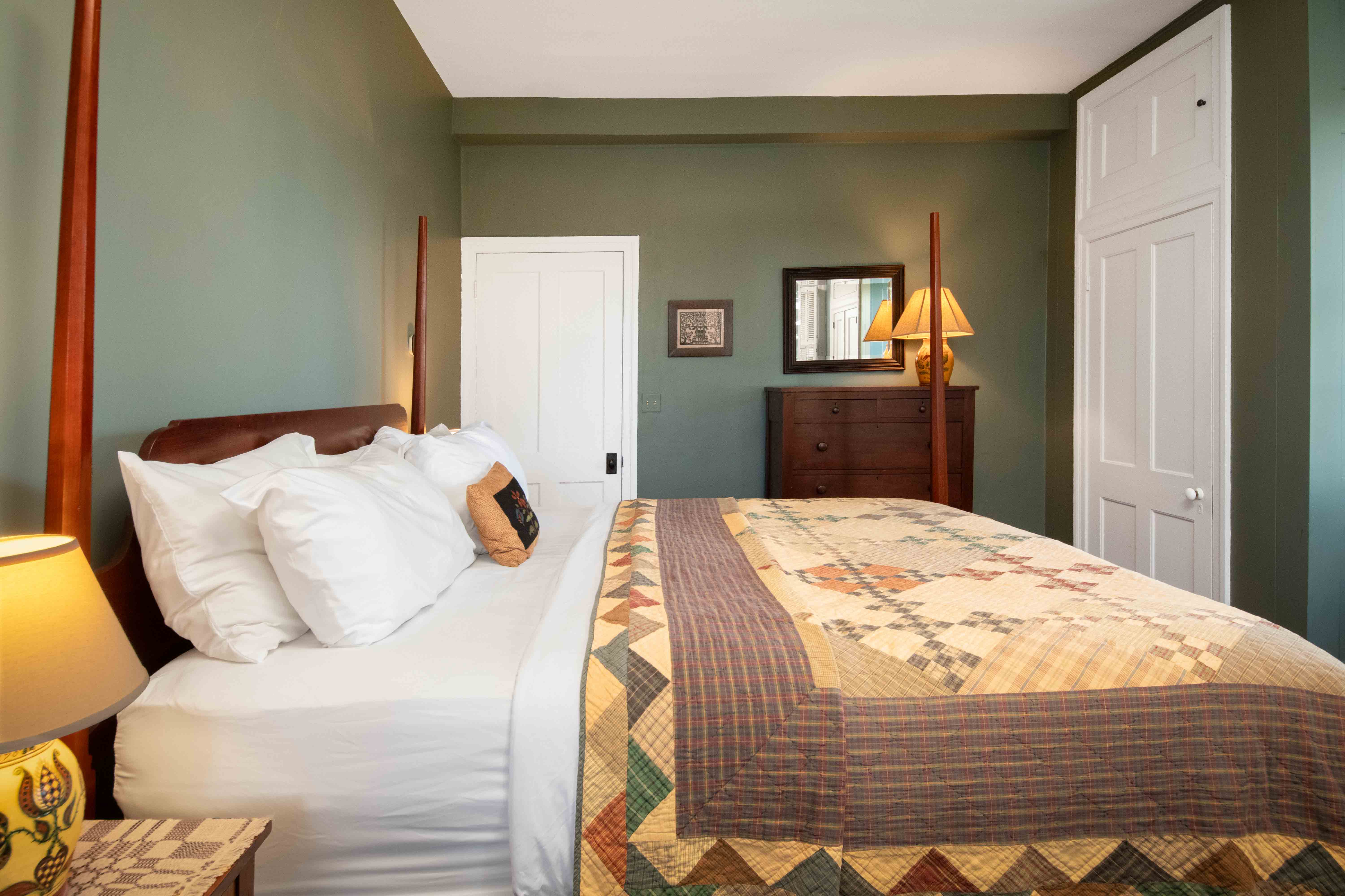 Indulge in the charm and elegance of our eight luxury suites, each adorned with meticulously restored period pieces from the Hermann area. Every suite is graced with beautifully crafted reproductions of distinctive Early American masterpieces. Experience the grandeur of tall, king-size pencil post tiger maple beds and uniquely designed cannonball and thistle beds, all created from stunning hardwoods exclusively for our Inn. Each suite is a perfect blend of historical splendor and modern comfort. The Inn Luxury Suites are located at 237 E. 1st Street, directly across from the Amtrak Staion.